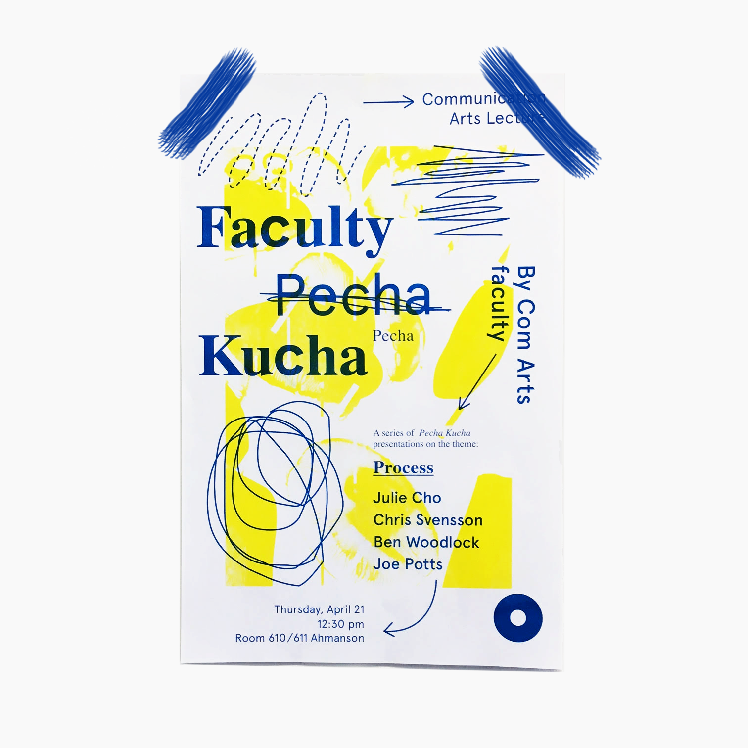Lecture poster for a series of Pecha Kucha presentations by graphic design faculty at Otis College of Art and Design on the theme of "process". In collaboration with Rachel Avramenko